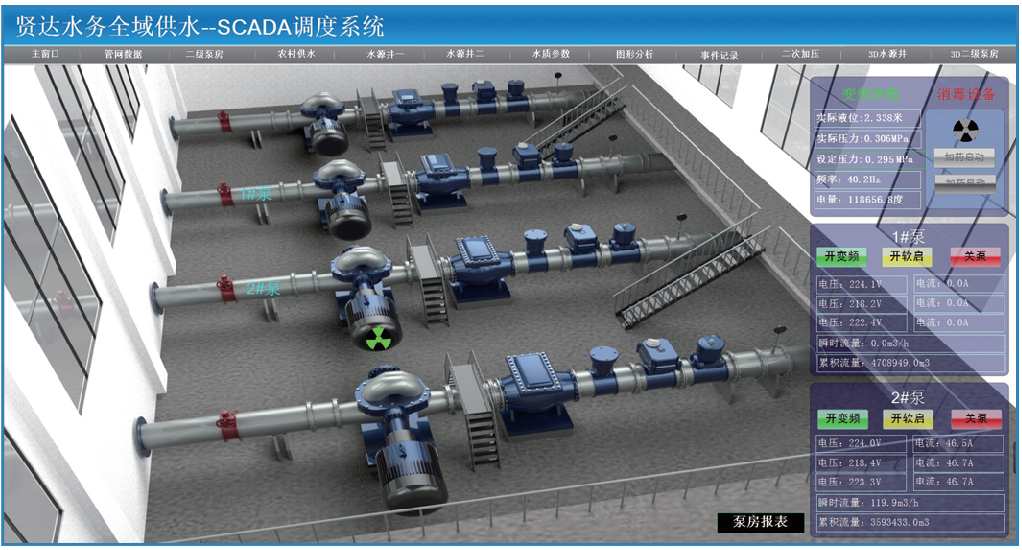 ◆ 系統(tǒng)可以實時監(jiān)測進廠流量、出廠流量、出廠壓力、水池水位、余氯等信息。